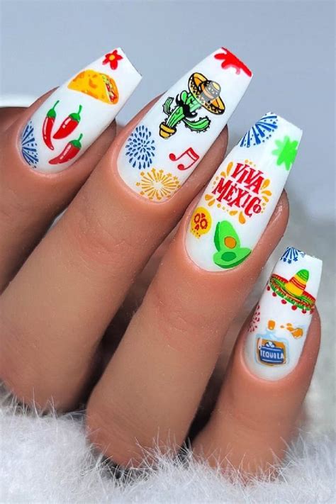 Elevate your nail art with the addition of rhinestones and charms. Create intricate patterns by placing rhinestones in various sizes and colors. Add mini charms of Mexican symbols, such as sombreros or maracas, to add a touch of whimsy to your design.