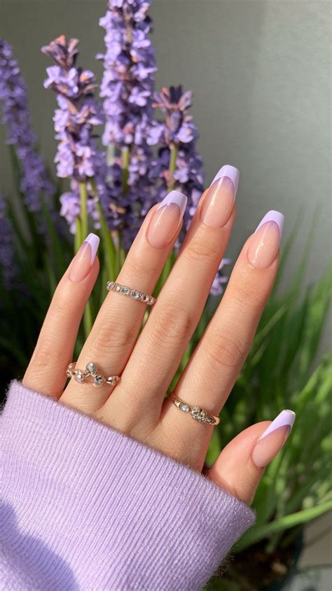 Embrace the timeless beauty of classic lilac nails for a polished and elegant look. Opt for a single coat of a sheer or opaque lilac polish and let the delicate hue speak for itself. Add a touch of shimmer or glitter to the tips for a subtle yet eye-catching touch.
